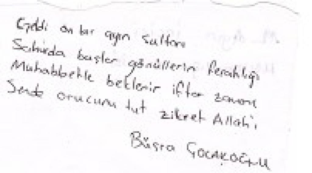 Okulumuz Öğrencileri arasında ramazan mani’si yazma yarışması düzenlendi. Yarışmaya katılan öğrencilerimize teşekkür ediyoruz.